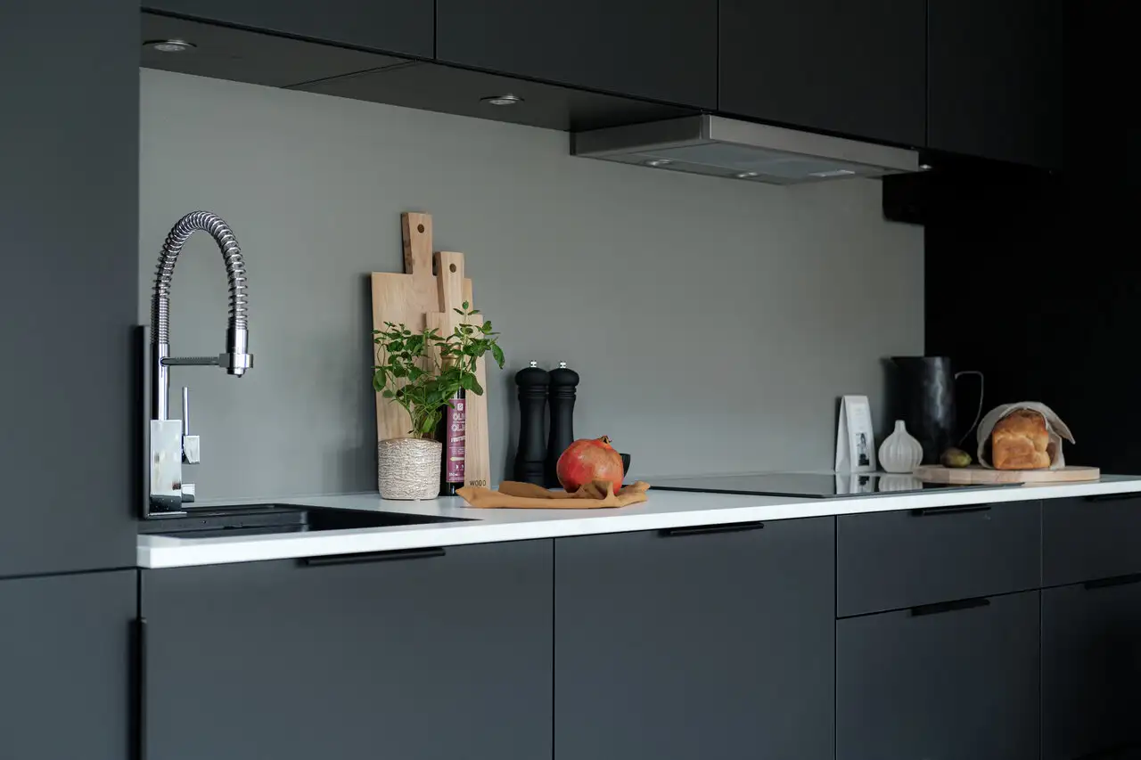 Helt öppen planlösning mellan kök och vardagsrum bjuder in till trevliga middagar för vännerna. Köket är stilrent renoverat med kvalitativ köksinredning från Kvik. Väggarna är målade i en mörkgrön färg och köksinredningen är i svart med vit bänkskiva. Köket har gott om förvaringsutrymmen och är utrustat med integrerad diskmaskin, integrerad kyl/frys, induktionshäll, ugn, inbyggd micro samt fläkt. Både över och under överskåpen sitter det belysning. Två stora fönster bidrar med ljusinsläpp och här har man helt fri utsikt över föreningens trevliga innergård. Här ryms en matplats samt soffgrupp och TV-bänk.